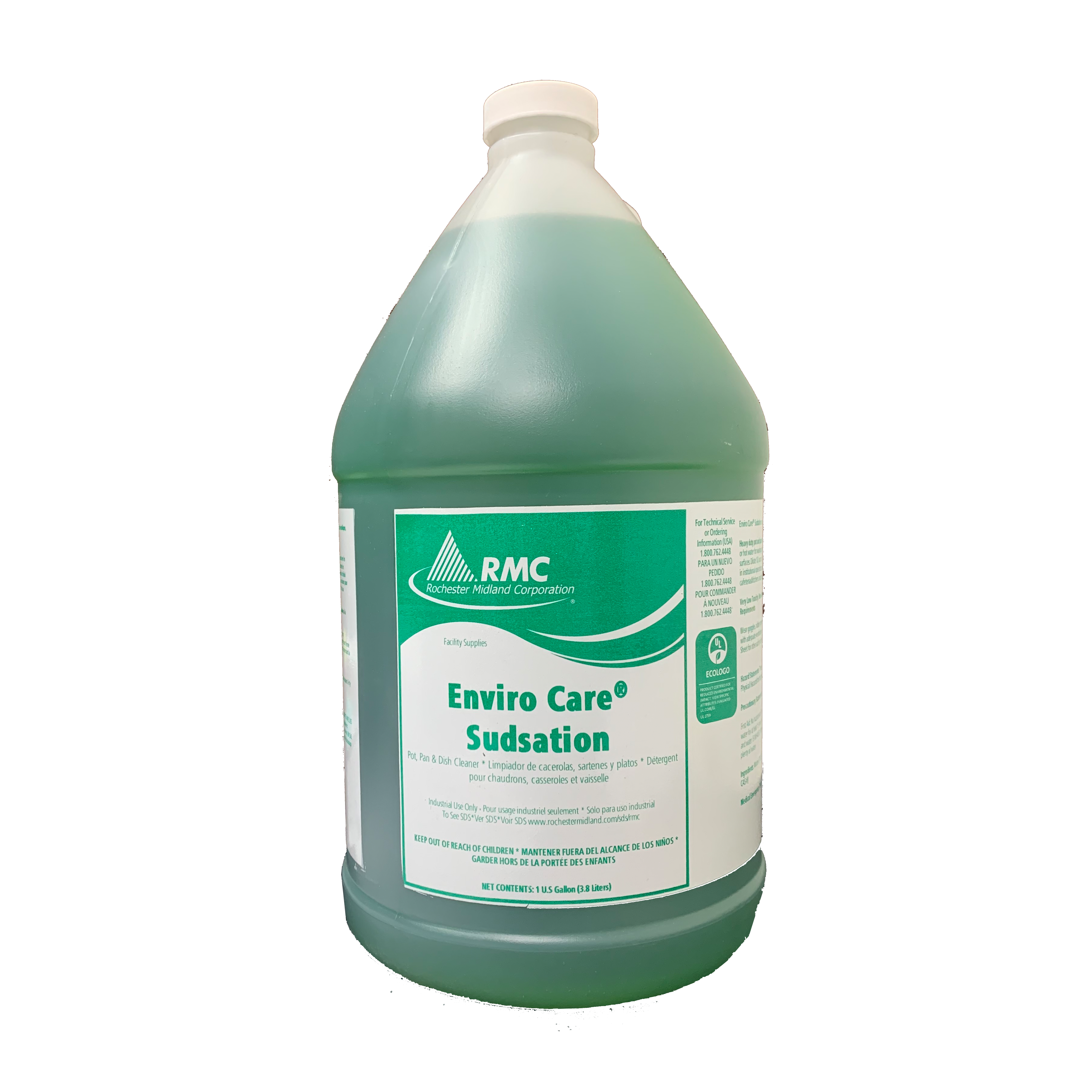 High-foaming cleaner for pots and pans is mild on your skin but tough on soils with film-free results. Enviro Care Sudsation is ideal for school cafeteria, healthcare facilities, nursing homes, daycare centers, supermarkets and restaurants. Bio-based, biodegradable, heavily concentrated formula delivers excellent grease penetration. Use a dilution ratio of .5 oz. to 1 oz. per gallon of warm or hot water for manually washing pots, pans, glasses and more. Portable water rinse is required on food contact surface. Cleaner is designed for industrial use only.